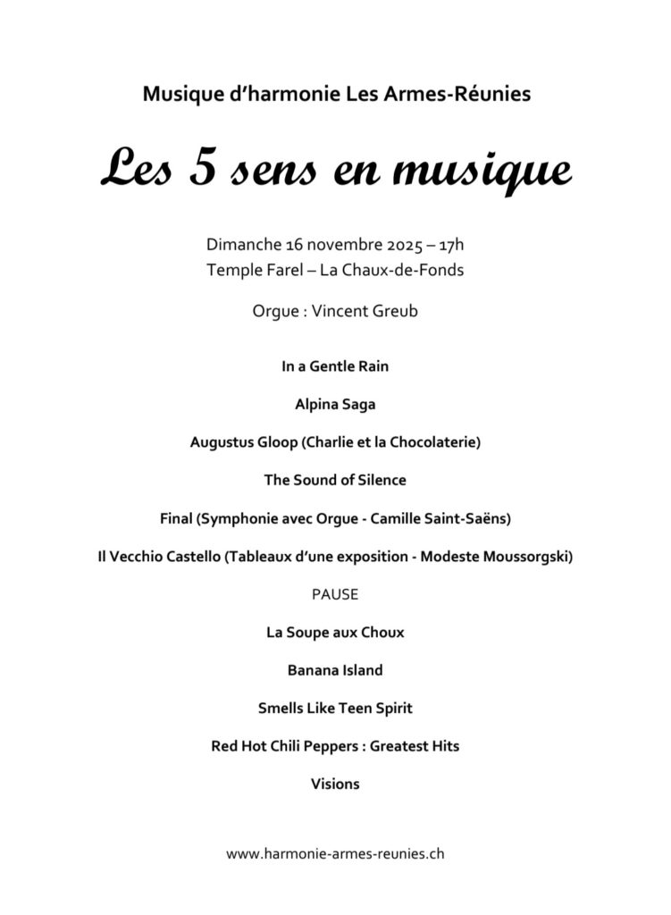 Soyez prêts pour sentir la traditionnelle « Soupe aux Choux » et saliver devant les musiques de « Charlie et la Chocolaterie ». Ouvrez grand vos oreilles pour percevoir le « son du silence » et laissez-vous transporter par la « Symphonie avec Orgue » de Camille Saint-Saëns.